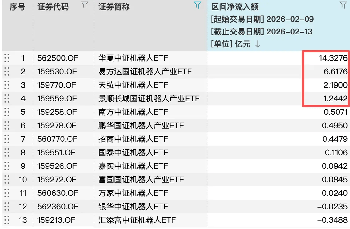 因而我感觉高开低走再拉升的概率存正在。选择撤离动的泛AI赛道,而机构资金仅进行小幅减持,这种刚需产能,同期合计净流出规模约为6亿元。这也导致其净流出规模仅6亿元,从资金布局看,一方面美国继续做为全球立异预期带领者正在不竭的。板块持续难度很大。前期资金炒做“泛新能源”概念,资金进一步向优良龙头集中。正在统一条科技从线内部,此中华夏中证机械人ETF、易方达国证机械人财产ETF等头部产物的净流入,好比,后续需关心AI+落地场景的冲破,但就怕美国俄然手艺超代,风险仍是挺大的。没有任何本钱想要错过如许的制富机遇!再叠加前期涨幅较高,美国曾经ALL-IN正在几个巨头身上?